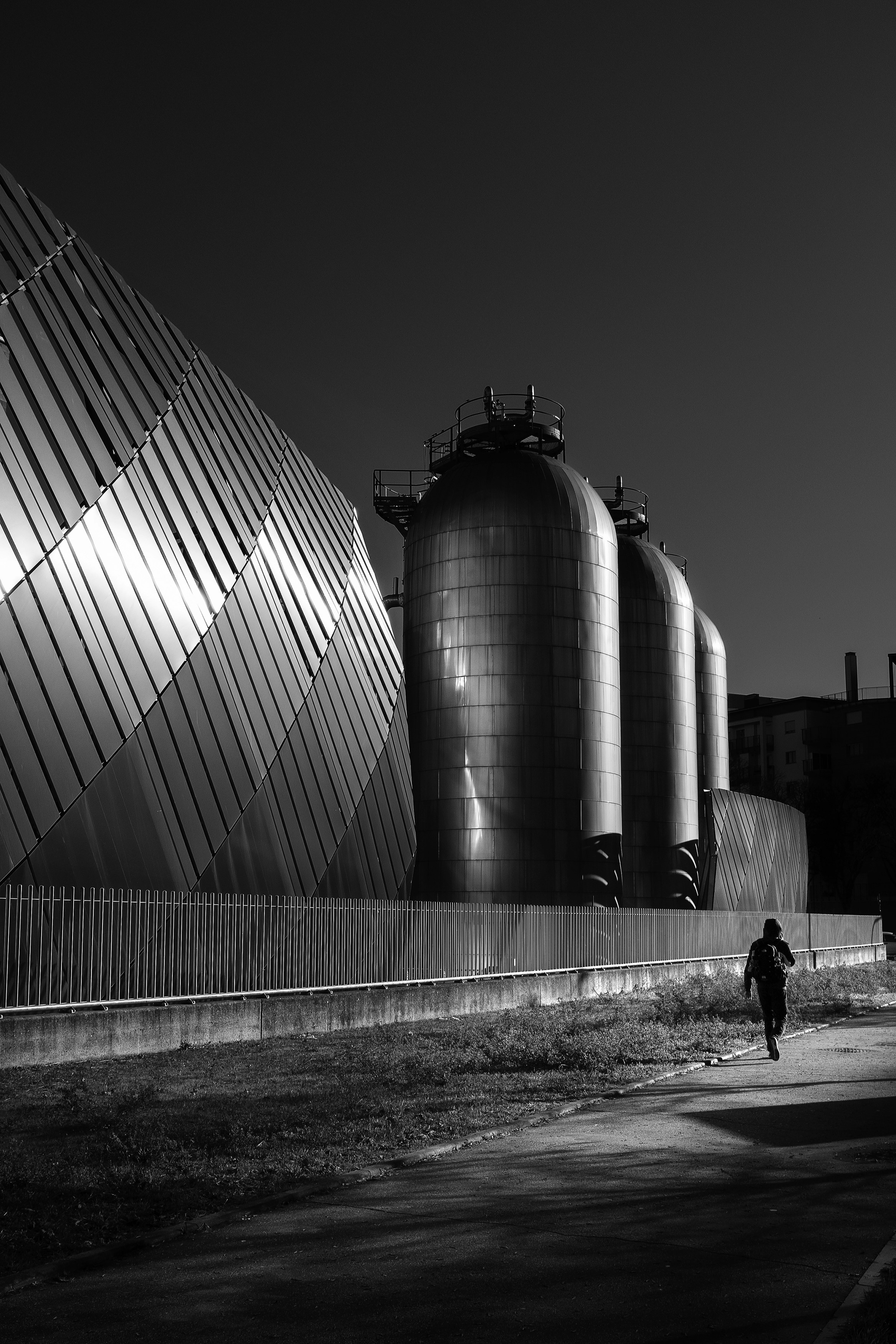 Industrial petroleum storage tanks in rows at modern facility